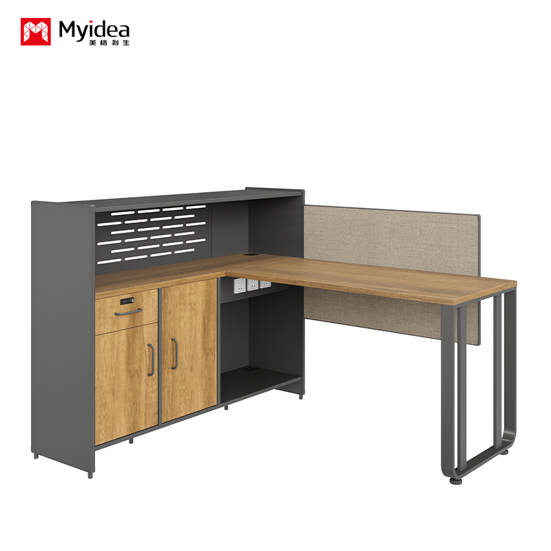Single Employee Desk with Cabinet Storage, industrial Style Office Desk, Simple and Modern Computer Desk