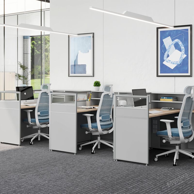 Bàn làm việc nhân viên Myidea tùy chỉnh có tủ đựng đồ, kiểu màn hình, ghế đơn, văn phòng đơn giản và hiện đại, bàn máy tính