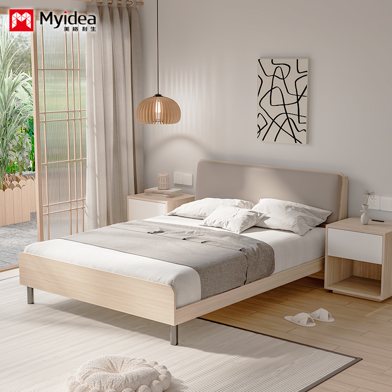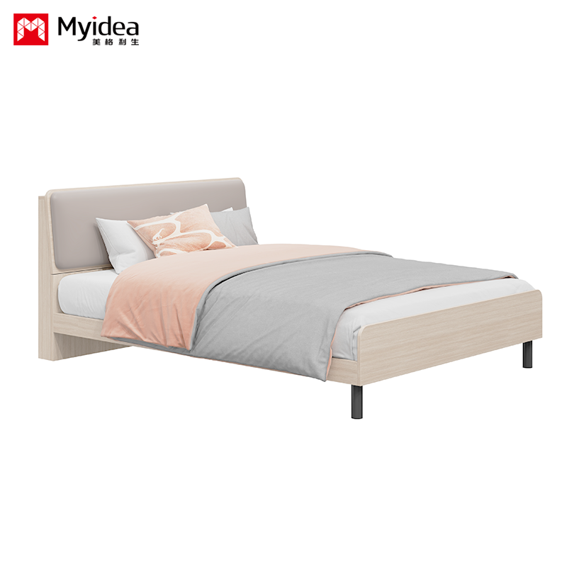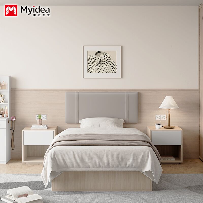Tùy chỉnh Giường Đơn Căn hộ, Homestay, Giường Tấm Ổn định với Thiết kế Cổng Sạc, Gói Mềm Đầu Giường, Giường Hiện đại
