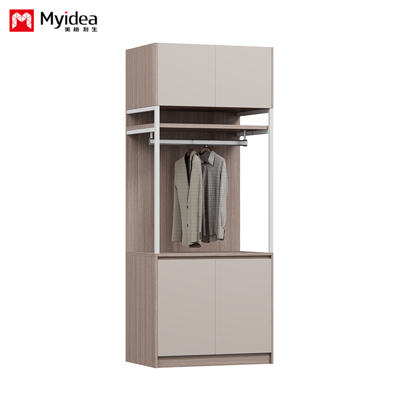 Thích hợp cho khách sạn Thiết kế phòng ngủ Tủ quần áo với cây gậy treo Không gian lưu trữ rộng rãi Bảng đồ nội thất gỗ cho nhà hoặc phòng khách Hỗ trợ tùy chỉnh