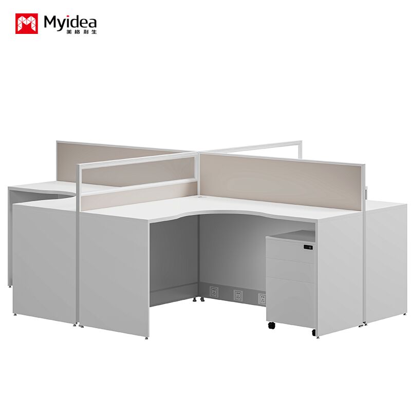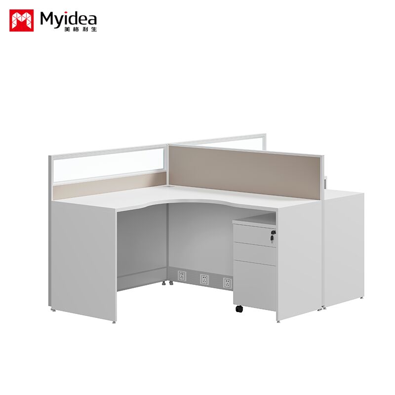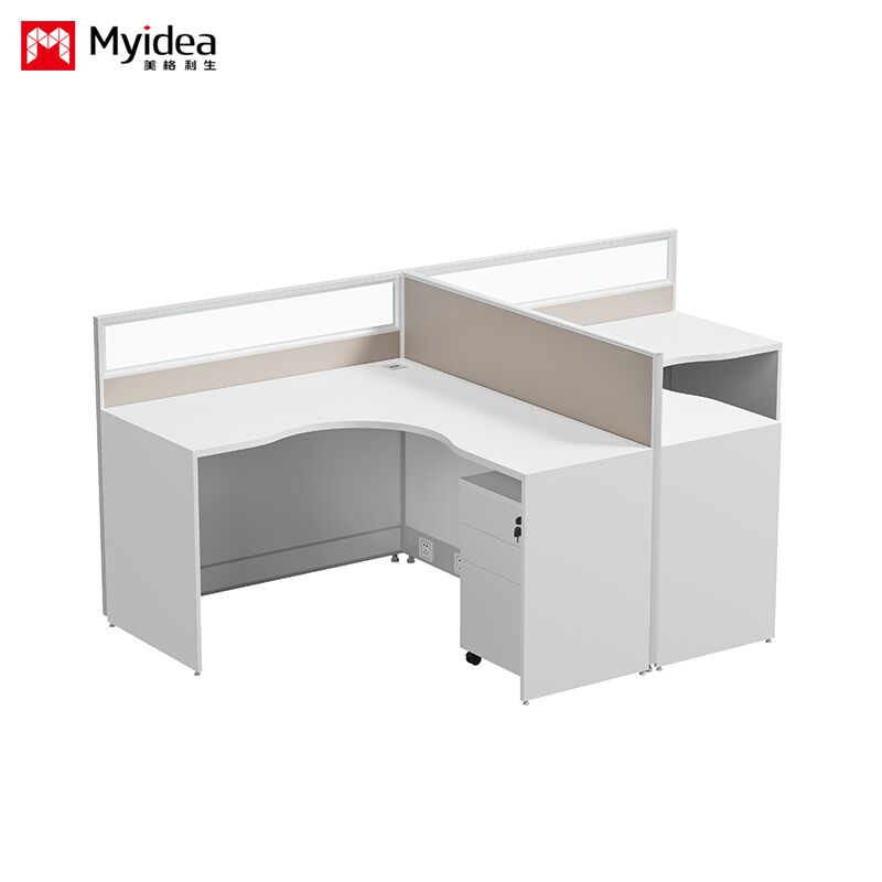Foshan bán buôn một người hình chữ L nhân viên màu sáng màn hình thẻ khe cắm đơn giản màn hình hiện đại bàn và ghế kết hợp