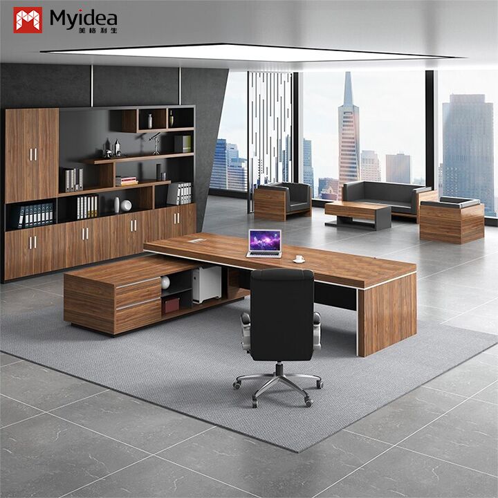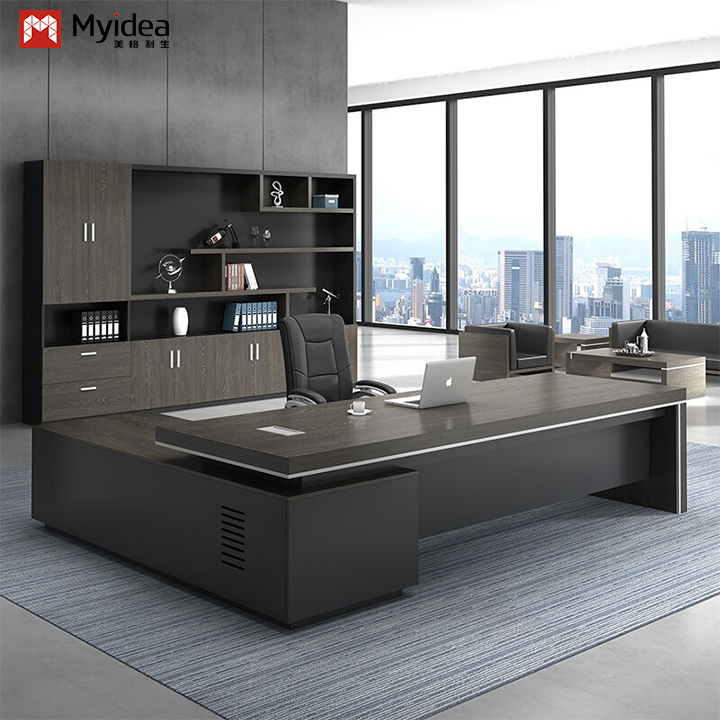 Bàn máy tính chữ L điều hành thân thiện với môi trường hiện đại với tủ phụ lưu trữ dung tích lớn