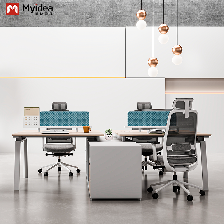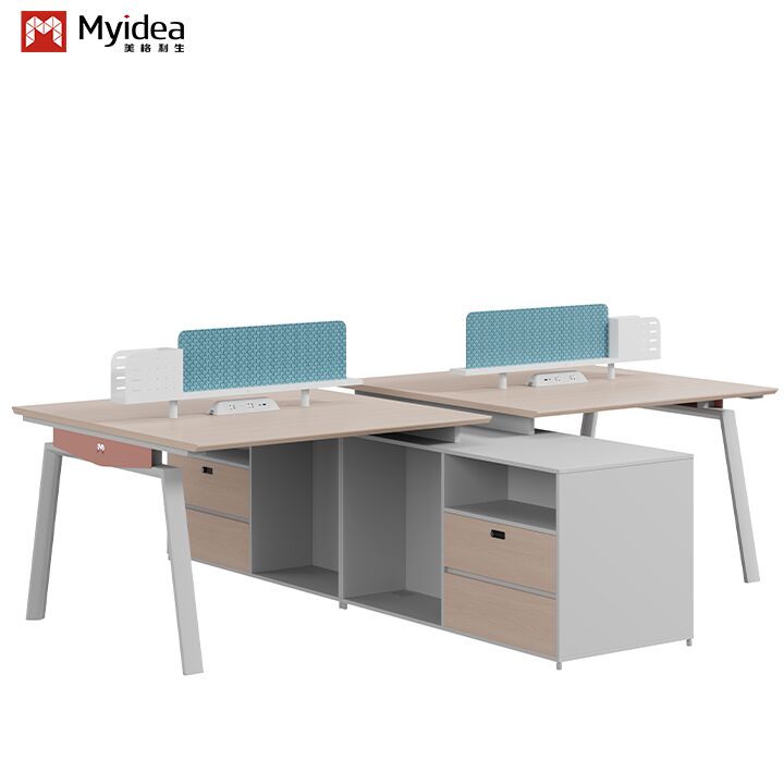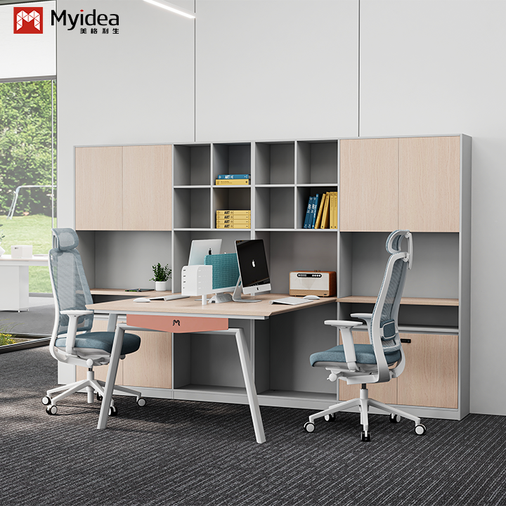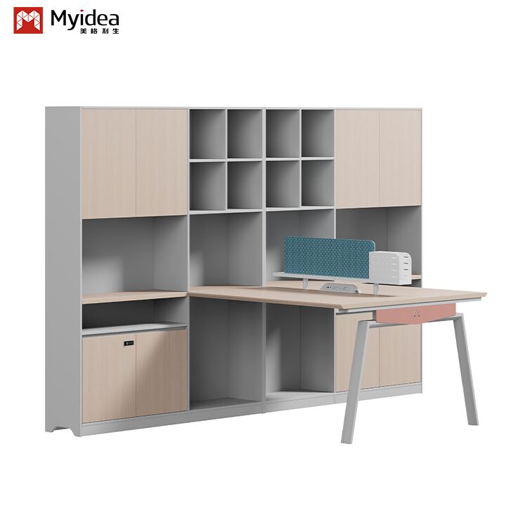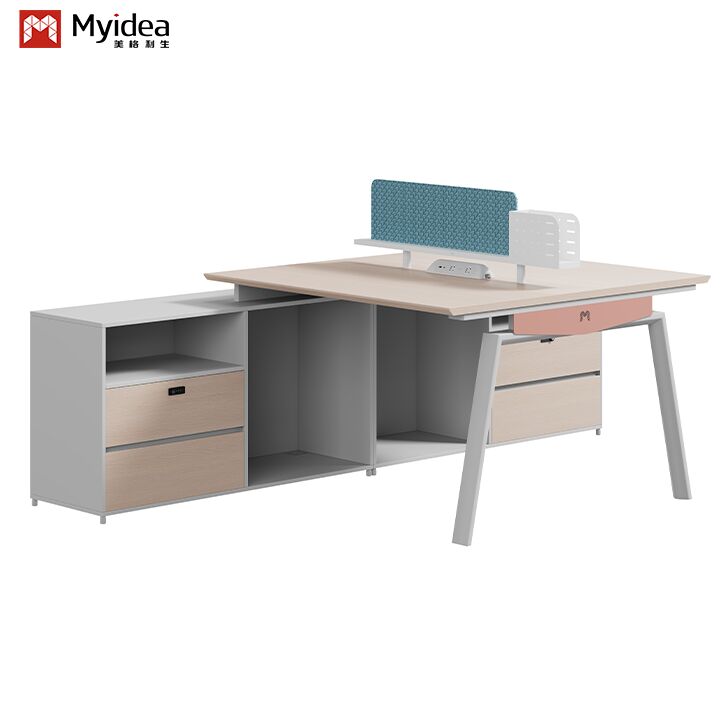 Bàn làm việc gỗ hiện đại thân thiện với môi trường với màn hình vải chân thép tủ lưu trữ lớn đồ nội thất văn phòng tự đứng
